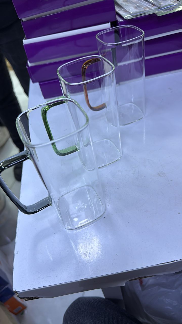 لیوان پیرکس دسته رنگی شعله مستقیم پک 4تایی 320 میل