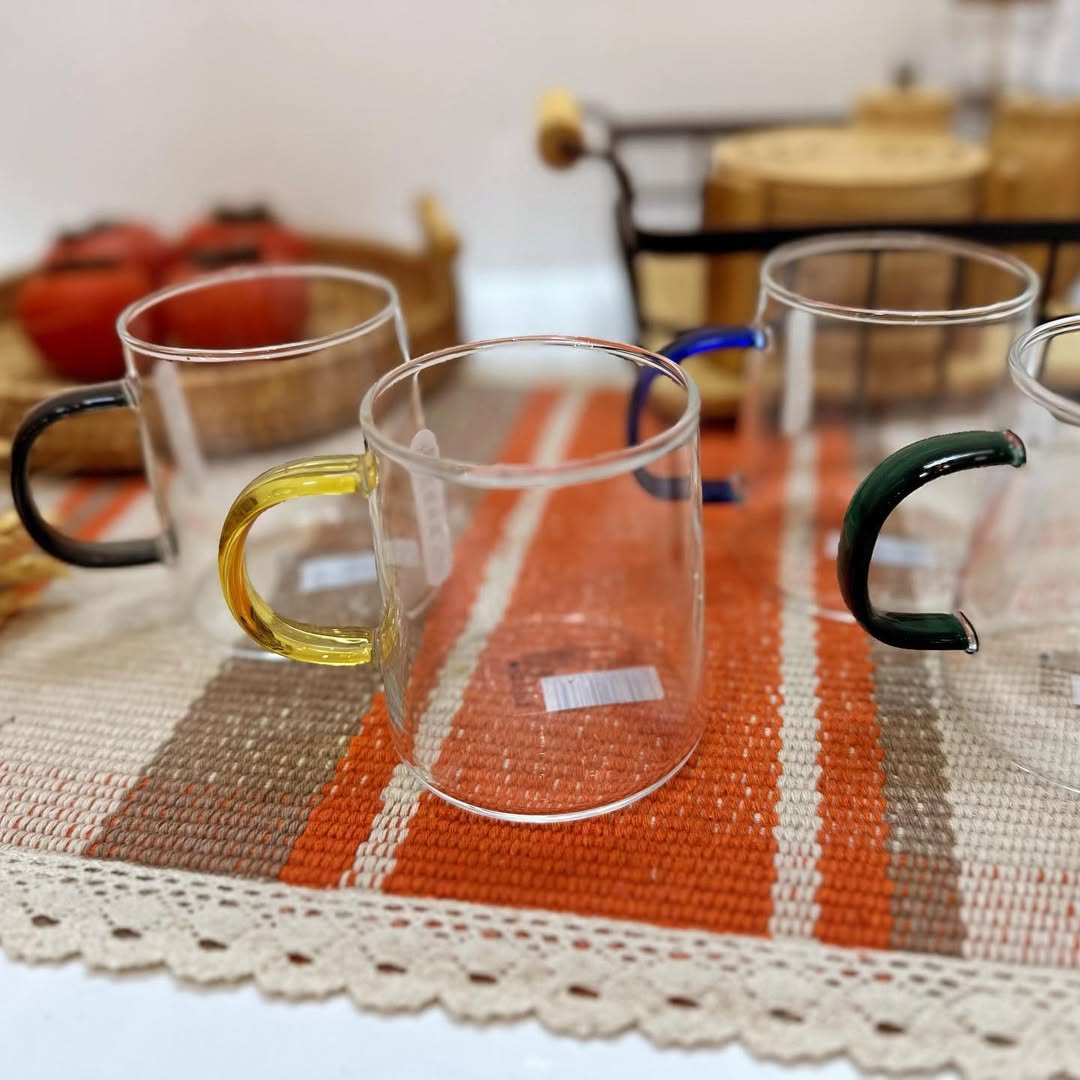 لیوان پیرکس شعله مستقیم دسته رنگی پک ۴تایی ۳۲۰ میل به صورت تک هر عدد ۹۰ هزار ارسال به تمام نقاط